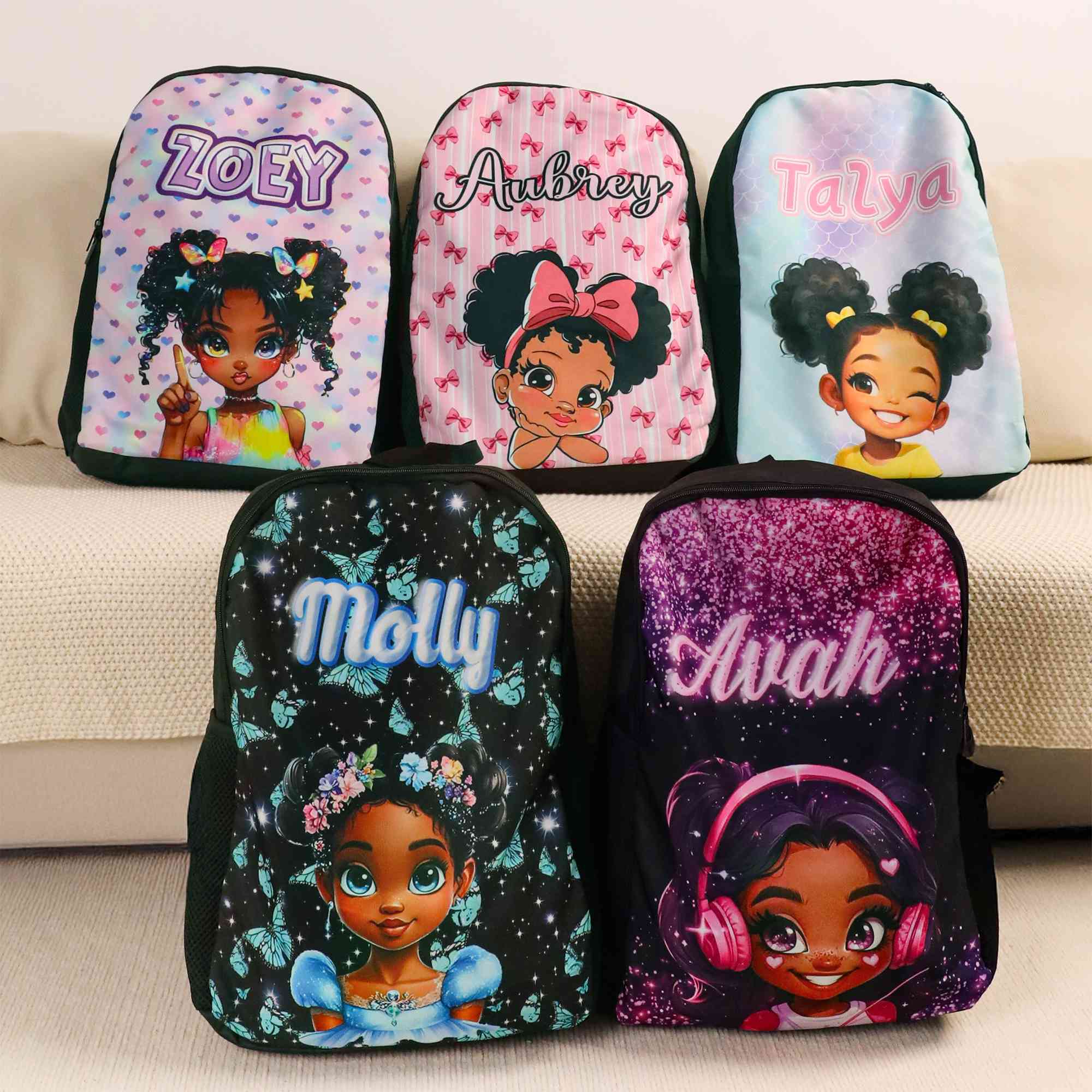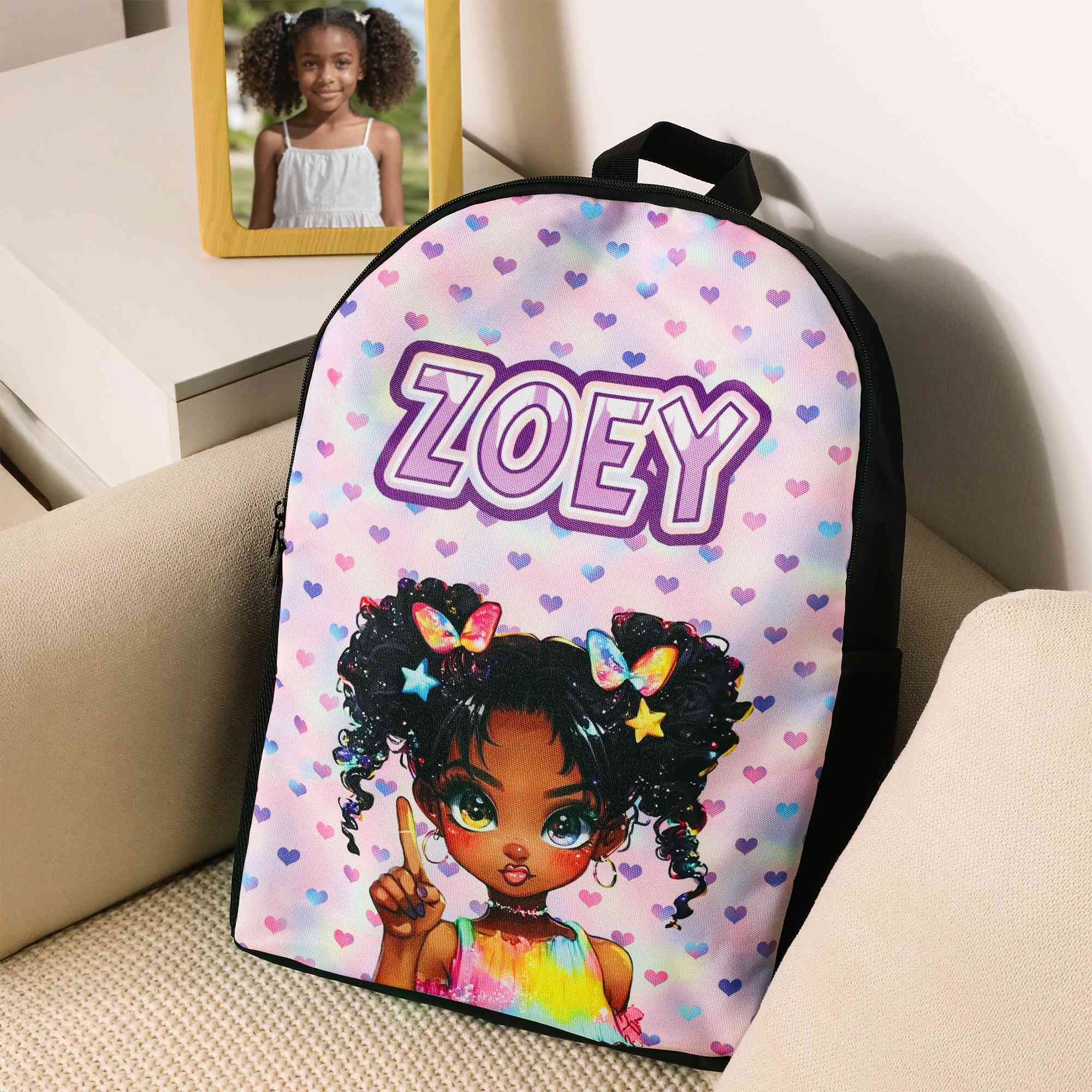 Style Custom Afro Black Girl School Bag with Name