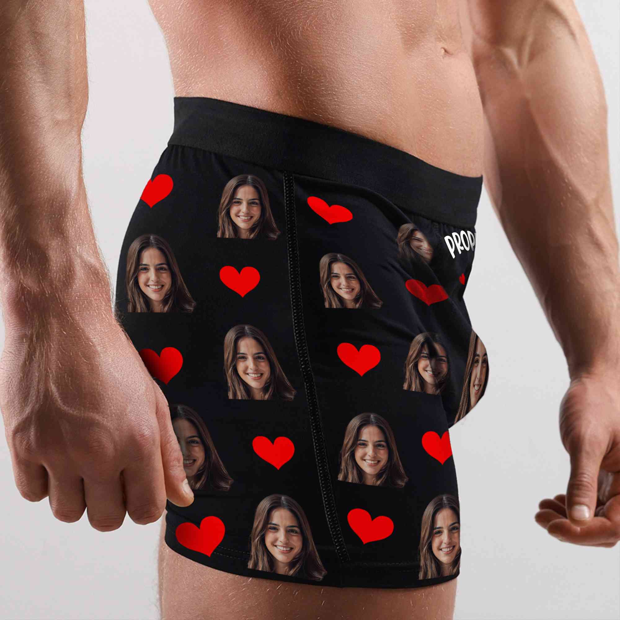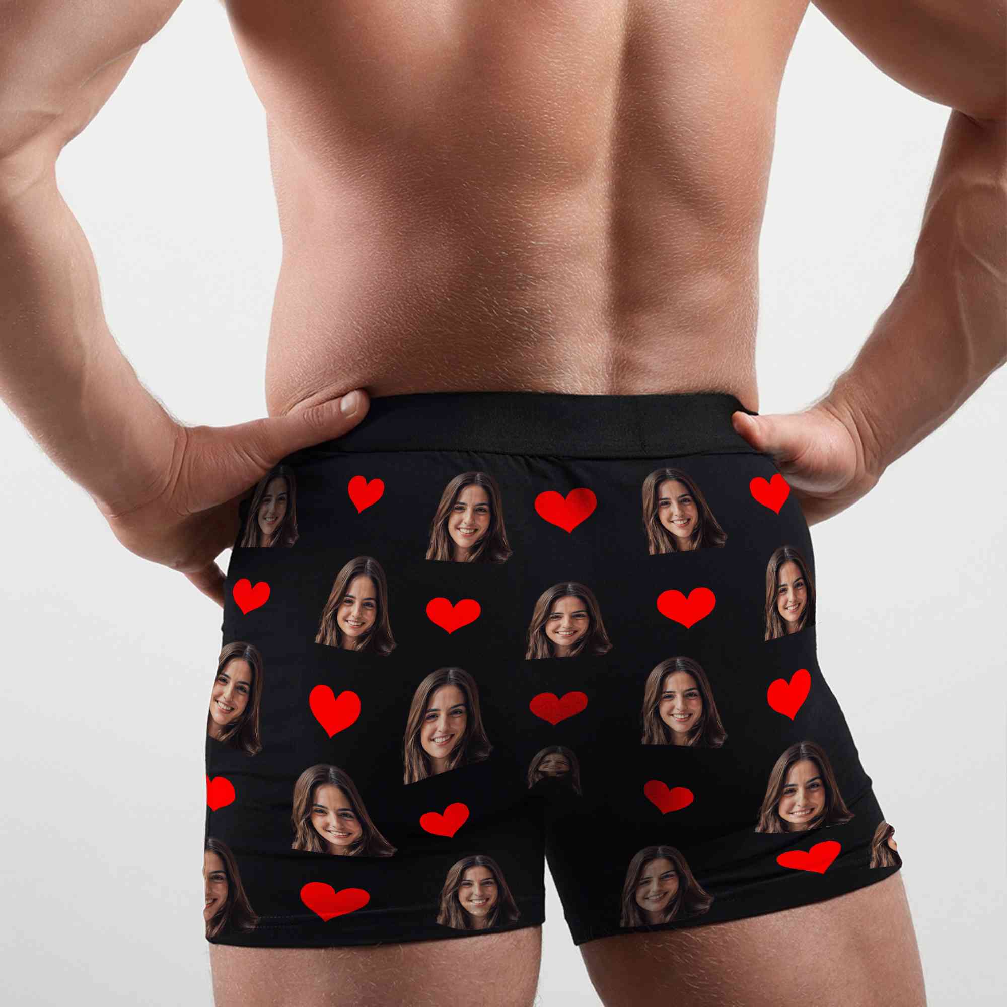 Personalized Face Photo Heart Design Funny Boxer Briefs |